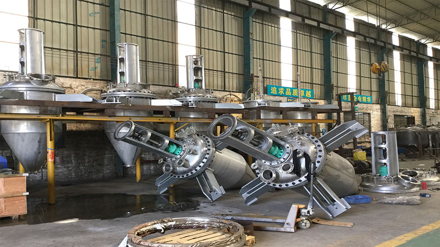 2、反(fǎn)應釜生產現場: